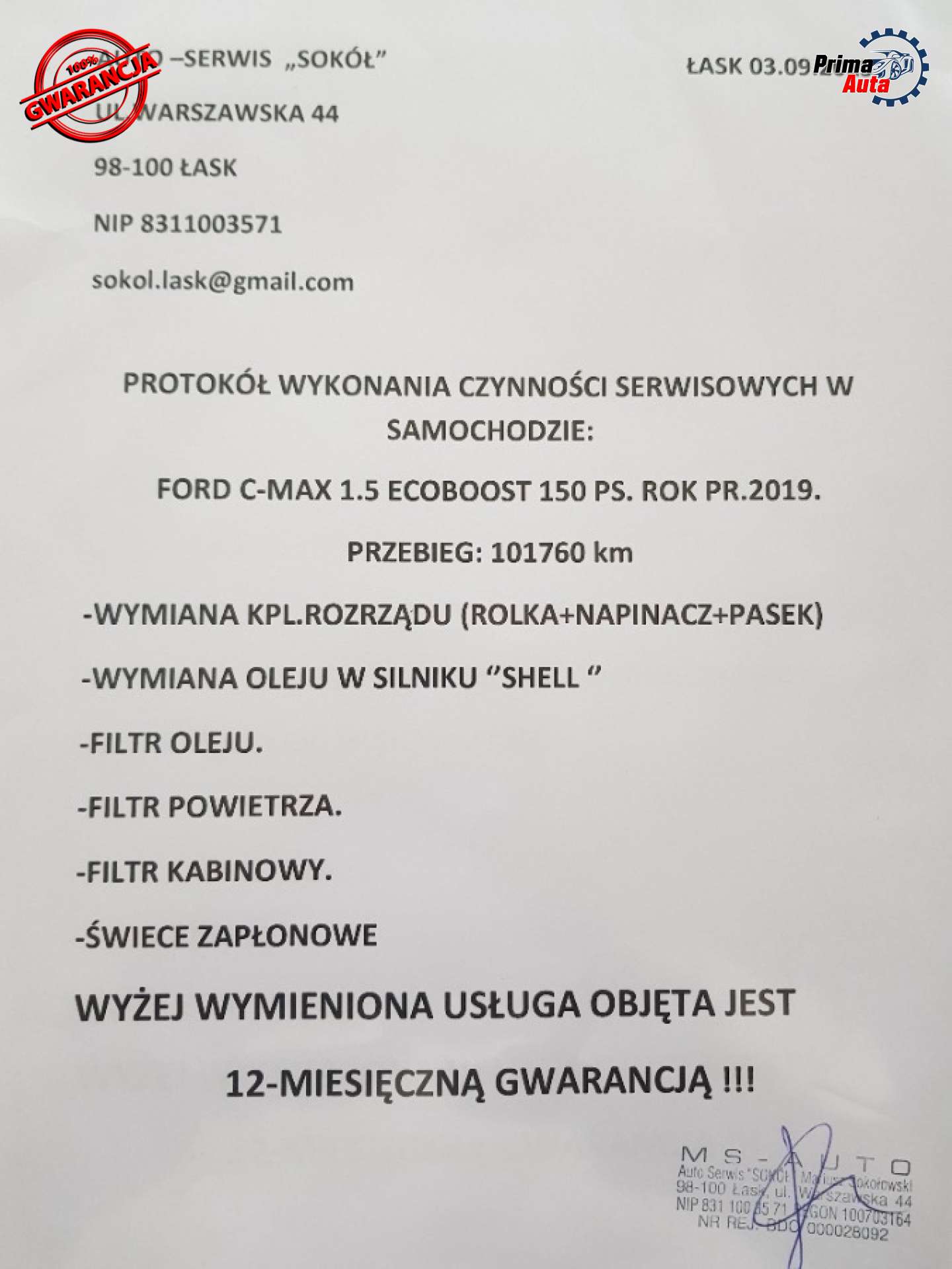 WYŻEJ WYMIENIONA USŁUGA OBJĘTA JEST 12 MIESIĘCZNĄ GWARANCJĄ!!!