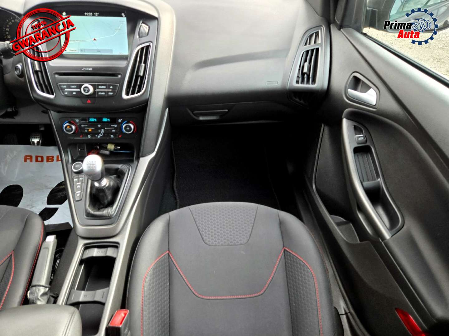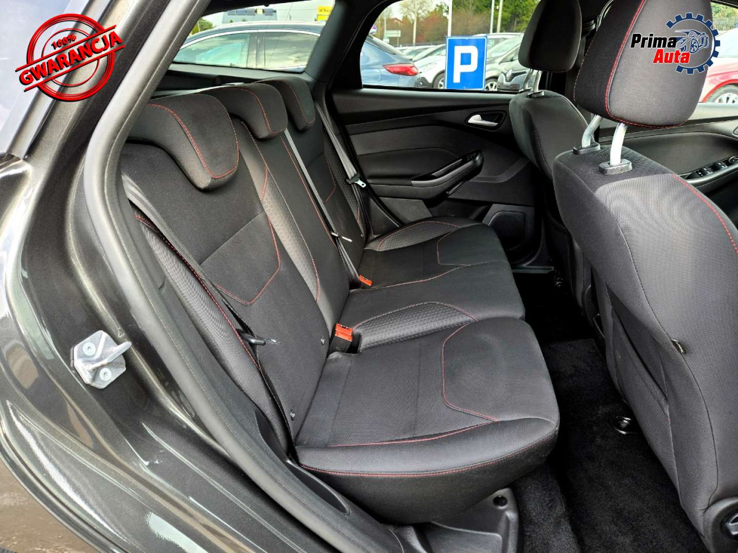 Wnętrze ST-Line, dodatkowe przeszycia czerwoną nitką, czarna tapicerka a wszystko w idealnym stanie .