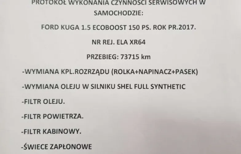 - wymiana rozrządu, oleju, filtrów, świec